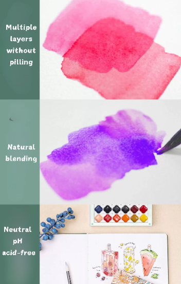 - Standard Size Watercolor Notebook (142mm x 90mm): A larger notebook for more detailed works, featuring fine-textured paper ideal for watercolor.